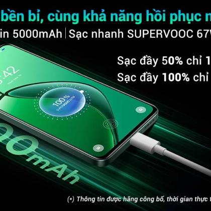 Chiếc điện thoại realme này được trang bị viên pin khủng 5000 mAh, mang đến thời gian trải nghiệm thoải mái, để bạn yên tâm sử dụng cả ngày không lo ngắt quãng. Đặc biệt, với sạc nhanh SuperVOOC 67W, chỉ cần 19 phút là pin tăng từ 1% lên 50% và sau 47 phút, pin đã đầy 100% (theo công bố từ hãng). Đây thực sự là lựa chọn lý tưởng cho những ai luôn bận rộn, vừa tiết kiệm thời gian lại vừa duy trì sự liên tục trong trải nghiệm sử dụng.