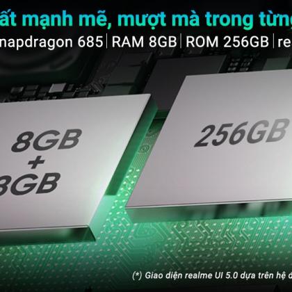 realme 12 sở hữu RAM 8 GB, có khả năng mở rộng thêm 8 GB từ bộ nhớ trong, giúp bạn dễ dàng xử lý nhiều ứng dụng cùng lúc mà không giật lag. Không chỉ vậy, dung lượng lưu trữ lên tới 256 GB cho phép bạn thoải mái cất giữ mọi dữ liệu quan trọng mà không cần lo lắng về việc bộ nhớ nhanh đầy.