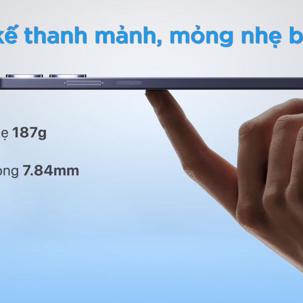Thiết kế của realme Note 60 mang đến sự hài hòa giữa khung viền vuông vức và các góc bo cong nhẹ nhàng, tạo nên cảm giác cầm nắm vừa vặn, vững chắc. Đây là kiểu dáng rất được ưa chuộng hiện nay, làm nổi bật vẻ đẹp thanh lịch và đậm chất hiện đại.