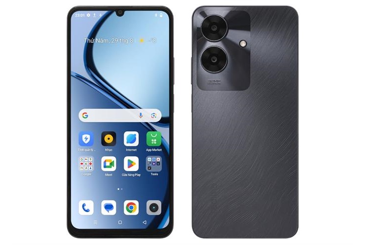 Mặt trước nổi bật với màn hình giọt nước, tận dụng tối đa diện tích hiển thị, giúp trải nghiệm thị giác trở nên sống động hơn. Tuy nhiên, điểm trừ nhỏ nằm ở phần cằm dưới hơi dày, có thể không thỏa mãn những người dùng yêu thích viền mỏng đồng đều.
