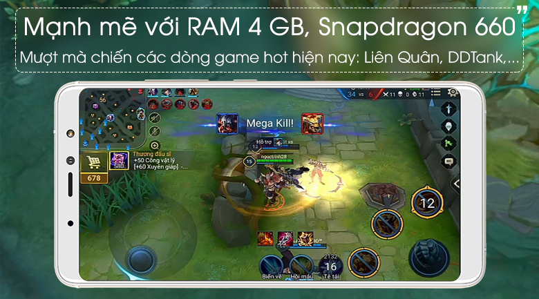Dù đã ra mắt khá lâu nhưng Snapdragon 660 vẫn được đánh giá cao về khả năng xử lý các tác vụ thường ngày, đặc biệt là khả năng chiến mượt mà các tựa game khủng hiện nay như Liên Quân cấu hình cao hay PUBG,...
