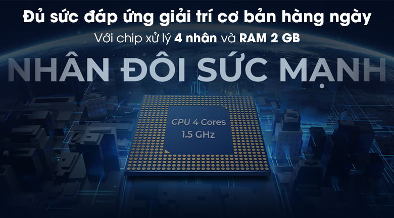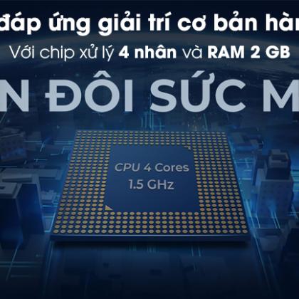 Máy được trang bị CPU 4 nhân và RAM 2 GB, giúp điện thoại chơi game ổn định trên các tựa game nhẹ cơ bản cũng như các tác vụ thường ngày xử lí mượt mà.