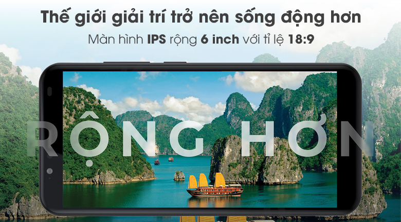 Khung và mặt lưng nhựa có thể thay vỏ và cho trọng lượng máy nhẹ chỉ 170 g. Kích thước màn hình lớn nhưng tỉ lệ 18:9 giúp máy thon gọn hơn, thoải mái hơn khi sử dụng lâu trên tay.