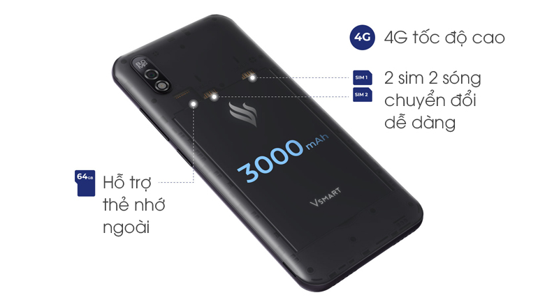 Vsmart bee 3 có dung lượng 3000 mAh cho thời gian sử dụng thoải mái. Kết hợp với hệ điều hành VOS được tối ưu để tiết kiệm pin hiệu quả.