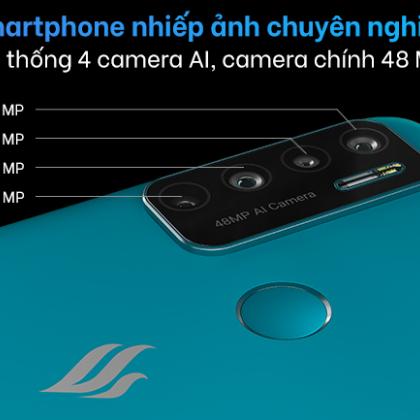 Cụm 4 camera sau nằm dọc trong khung hình chữ nhật nổi bật bao gồm camera chính 48 MP, camera góc siêu rộng 8 MP, camera xóa phông 5 MP và cuối cùng là camera macro 2 MP, có thể thấy chiếc Vsmart này tuy có giá không cao nhưng vẫn được tích hợp các tính năng chụp ảnh hiện đại theo xu thế như cảm biến AI, chụp góc rộng, xóa phông, chụp đêm,...