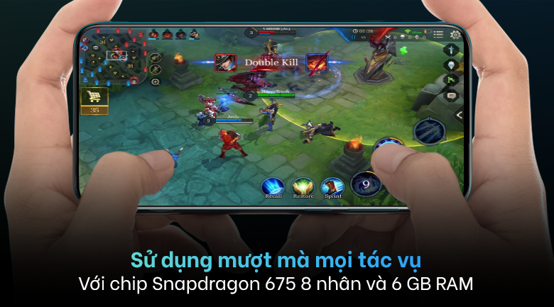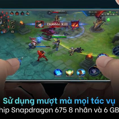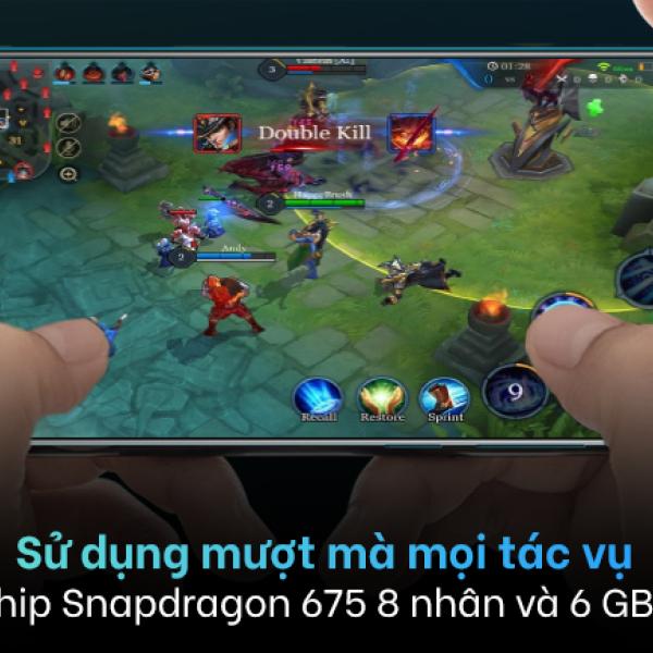 Máy sở hữu RAM 6 GB và ROM 64 GB kết hợp chip Snapdragon 675 8 nhân đủ mạnh để đảm bảo rằng bạn mở cả 10 tab ứng dụng hay chơi vài tựa game setting trung bình như Liên Quân Mobile hay PUBG mà nó vẫn chạy mượt trong vài giờ tuy nhiên khi chơi game thời gian dài thì máy sẽ bị nóng lên.