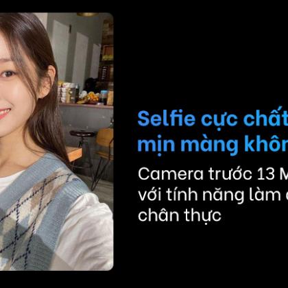 Mặt trước là camera selfie có độ phân giải 13 MP cũng được trang bị các tính năng chủ yếu như làm đẹp, xóa phông, tự lấy nét,... giúp bạn dễ dàng có được bức ảnh selfie ưng ý nhất.